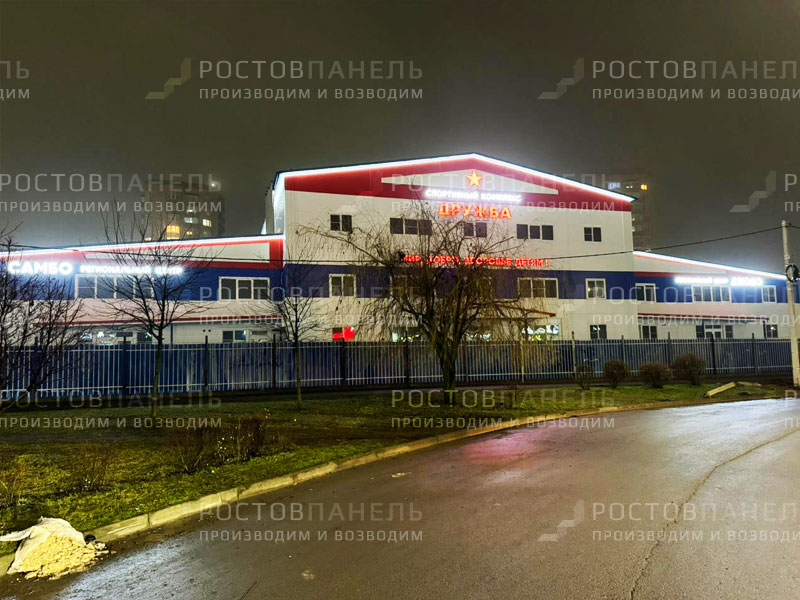 Футбольный манеж в г.Краснодар, ул Кореновская Емкость панелей 808 м2 . Апрель 2015 г.